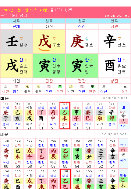 제 사주가 가수 남태현 사주와 같습니다. 조열하고 브레이크가 없는 사주라고 합니다.