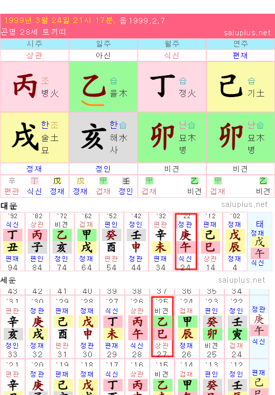 [온천물3] 눈도 밝고 외모는 이쁘고 수려하겠네요 차분하고 신중하고 남을 잘 이해하고 포용하는 성격 내면적 성찰과 깊은 사고력이 좋고 단지 활력이 부족하고 결단력이 약하거나 우유부단할수 있고 처음에는 외형적 성격이지만 점점 소심하고 내성적일수 있어요 관성이 없다보니 취직에 어려움이 따릅니다 자신감도 떨어지고 초년에는 용신운이 왔는데 왜 힘들었을까 좋은운 가운데 지지 충이 들어 와서 힘들었네요 용신운도 상황에 따라 달라서 마음을 놓으면 안되겠어요 초년에는 궁핍했어나 나중에는 형편이 조금 좋아집니다 을목이 강하니까 을목의 나라 일본에 대한 관심과 배우자를 선호하겠네요 대운을 보면 관성운이 강하게 들어와서 연애운은 활발하겠어요 단지 내 자신은 무듬듬 할뿐이지만 결혼을 해도 크게 좋지도 싫지도 않은 느낌 돈이 생기면 남자에게 뺏기거나 주는구조라 내몫은 알뜰히 챙겨야 합니다 생활 패턴이 무느지기 때문에 일과 돈은 조금이라도 항상 있어야 건강에 좋아요 직장 취직도 마찬가지 계약직이 낫고 정규직은 오래 못 버팁니다 짤게 짤게 먹고 나오는 팬턴이 맞아요 물론 수입이 적겠지만 티끌모아 태산이라고 내분수 외는 뺏기게 되어 있어요 인성도 약하다보니 적게 배운걸 자주 써먹는 케이스가 됩니다 너무 자신감이 강하다보면 트러블이 생길수 있어요 항상 적당히 저자세로 멀리서 바라보다가 기회가 올때 잽싸게 낚아 채는 전략이 필요해요 종합적으로 정리 하자면 특별하게 큰 실력보다 그만그만한 사주입니다 눈치가 빠르면 살아남고 어영부영 하면 기회를 놓칩니다