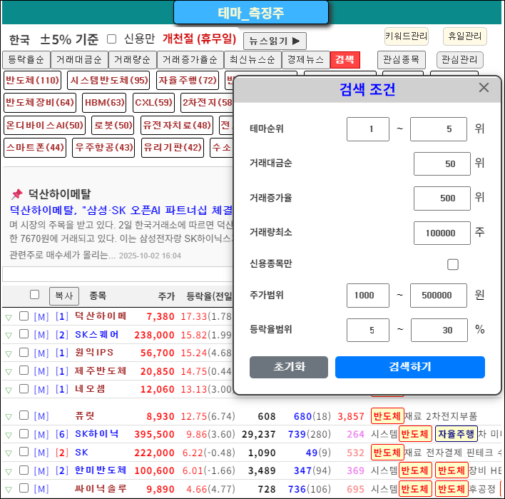 테마주 특징주 안내