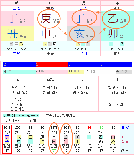 배우자와 해로하기 힘든 사주가 시상(시간) 상관에 비견급 사주