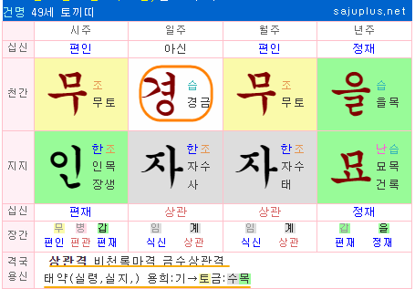 사주풀이연습 - 자묘형의 상관격 남명사주