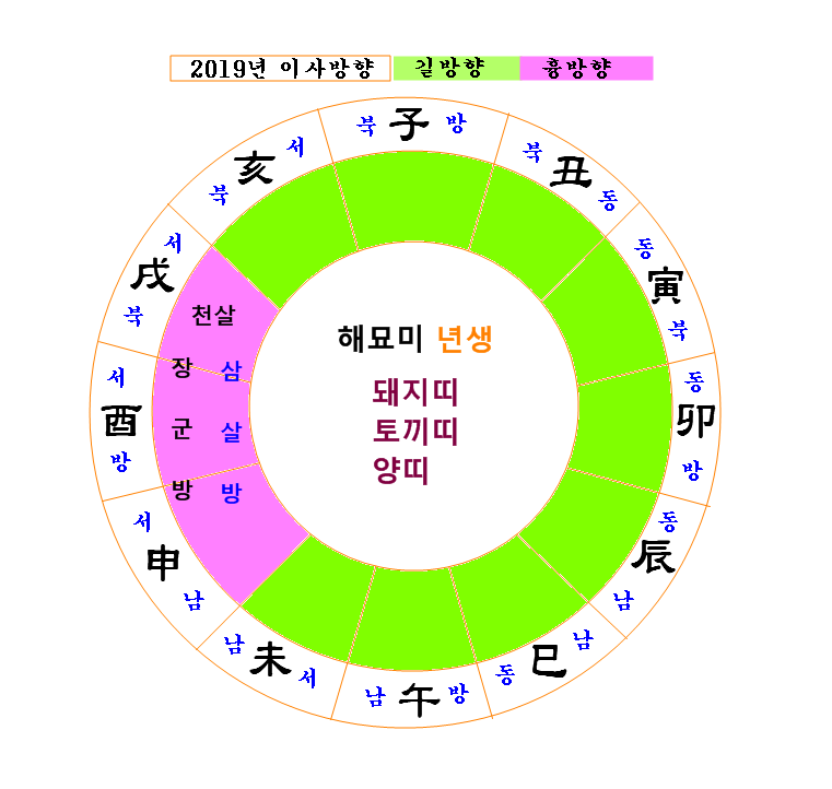 이사방향 - 2019년 기해년 띠별 좋은 이사방향, 흉한 이사방향