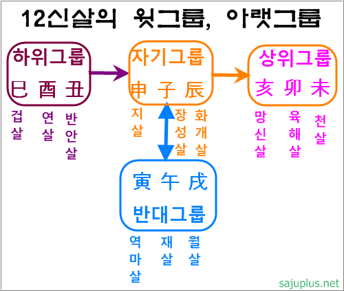 12신살의 정서- 윗그룹, 아랫그룹, 반대그룹에 따른 인간관계