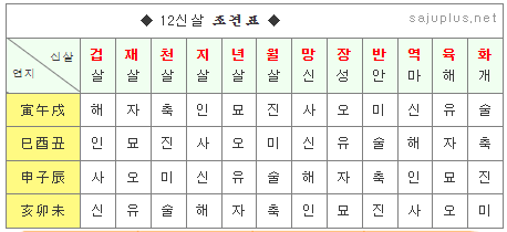 사주공부 - 12신살의 조견표와 개념, 12신살 외우는 방법