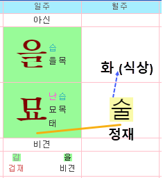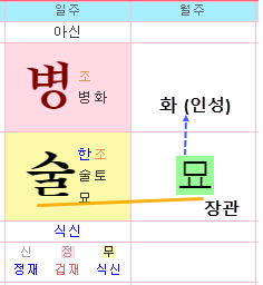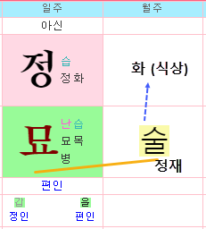 ▸배우자 배우자는 일지 술토로, 술토의 입장에서 정관 묘목을 향하고, 인성인 화오행을 생성합니다. 배우자는 규율과 규칙, 일정한 틀속에서 안정되는 것을 선호하며, 일상생활도 여유와 느긋함을 추구합니다.