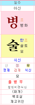 ▸요약 : 노양일 (서산에 지는 해) 낙천적이며 예의 바릅니다. 감수성이 발달하여 종교에 귀의하는 경우도 생깁니다. 열정이 넘치지만, 자신의 생각을 표현하지 못해 우울감을 느끼는 경우도 있습니다. 일지가 식신이라 식도락을 즐기고 대화를 좋아해, 사람들과 교분을 좋아합니다. 일주자체가 백호살에 해당되어 겁이 없고, 용감하며 다혈질적인 면모도 강합니다. 정열적이고 적극적이며 간섭도 많은 편입니다. 지지 술토가 운에서 충이나 형이 되면 배우자가 질병에 약할 수 있습니다.